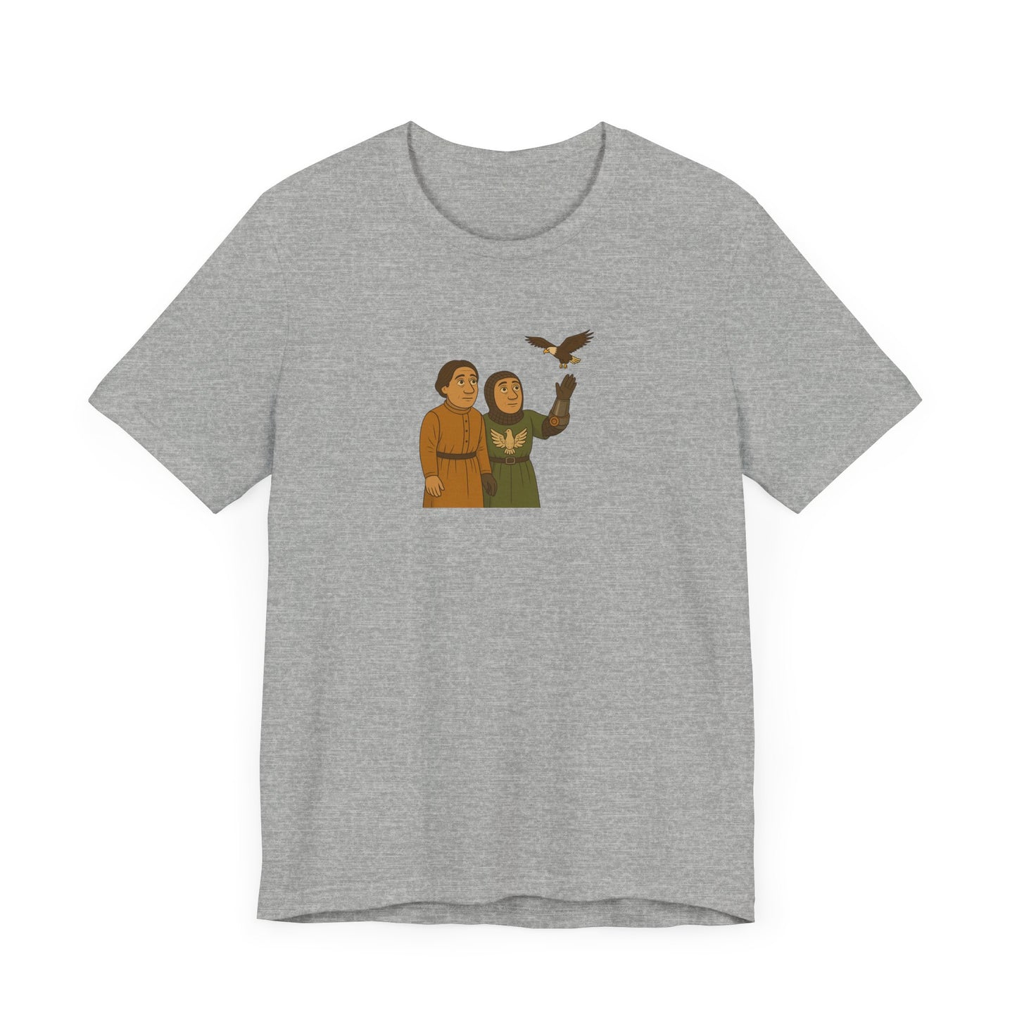 This Medievaly original features a noble knight in full regalia releasing a majestic eagle into the skies, with his companion watching in awe—a design inspired by illuminated manuscripts and medieval storytelling. It’s not just a tee—it’s a canvas of folklore. Discover timeless comfort and style with this unisex heavy cotton tee.