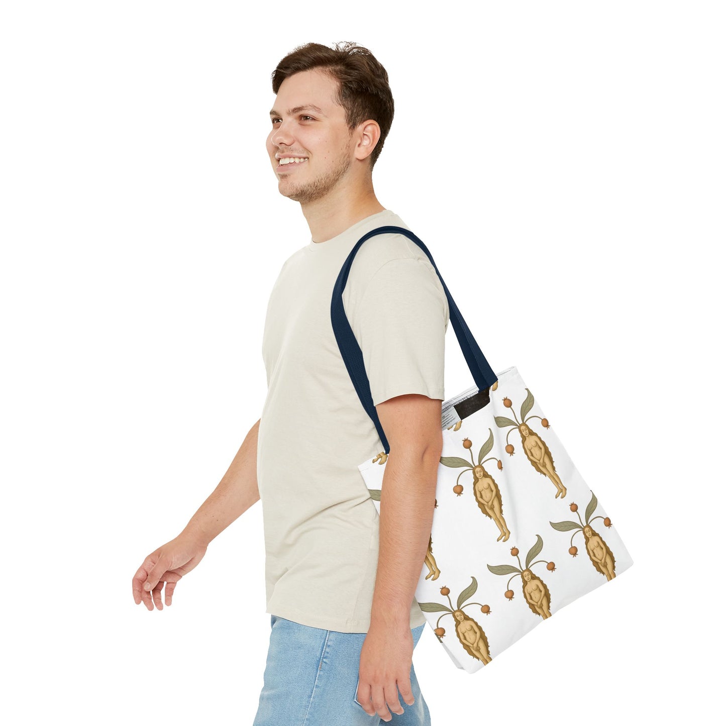 With leaves like crowns and roots shaped like humans, it was beleved to possess powerful medicinal and magical properties. But beware: its unearthing was deadly. To harvest it safely, a starving dog was tied to the plant. Tempted by meat and unaware of the danger, the dog would pull it free, absorbing the fatal scream—while the master waited at a distance.Introducing the perfect Tote Bag, designed to elevate your everyday style with its unique and artistic designs.