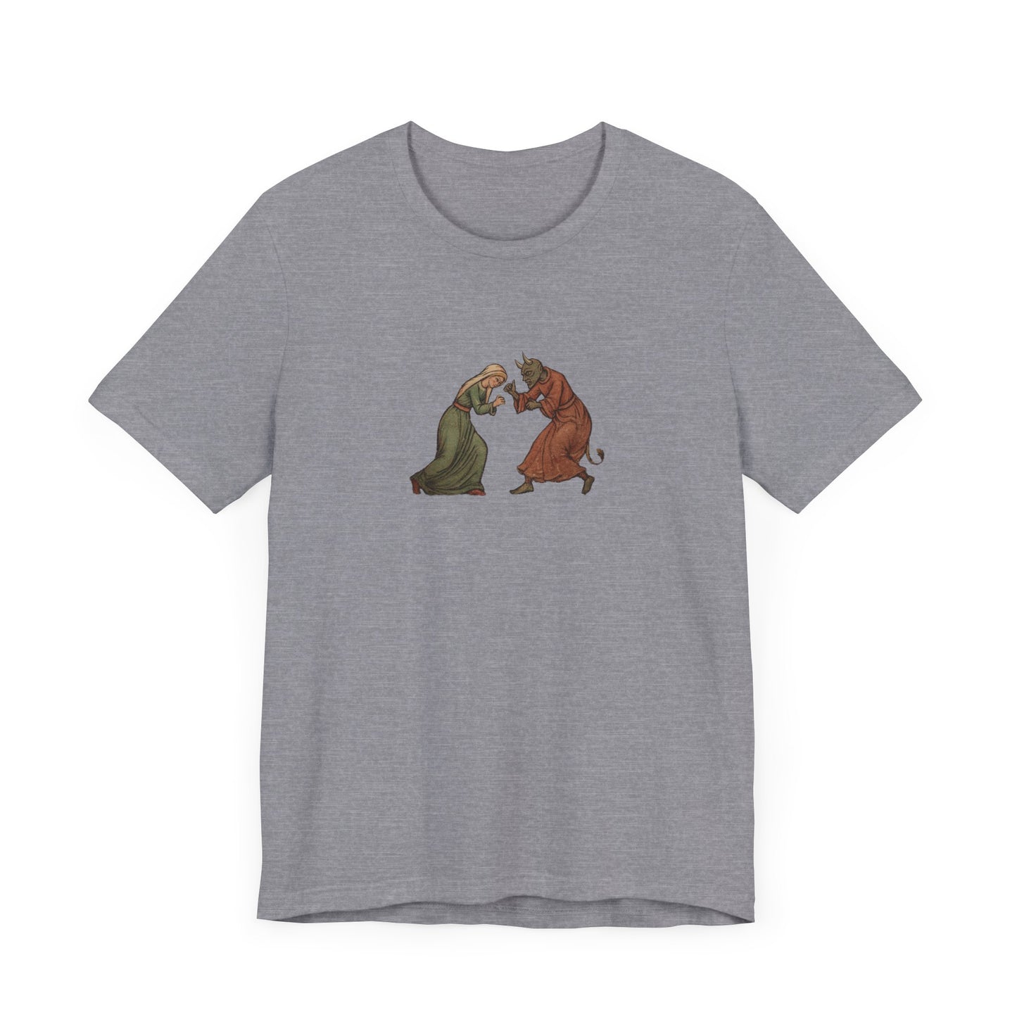 The Virgin Mary punching the Devil Medieval Manuscript T-shirt (ML-09)